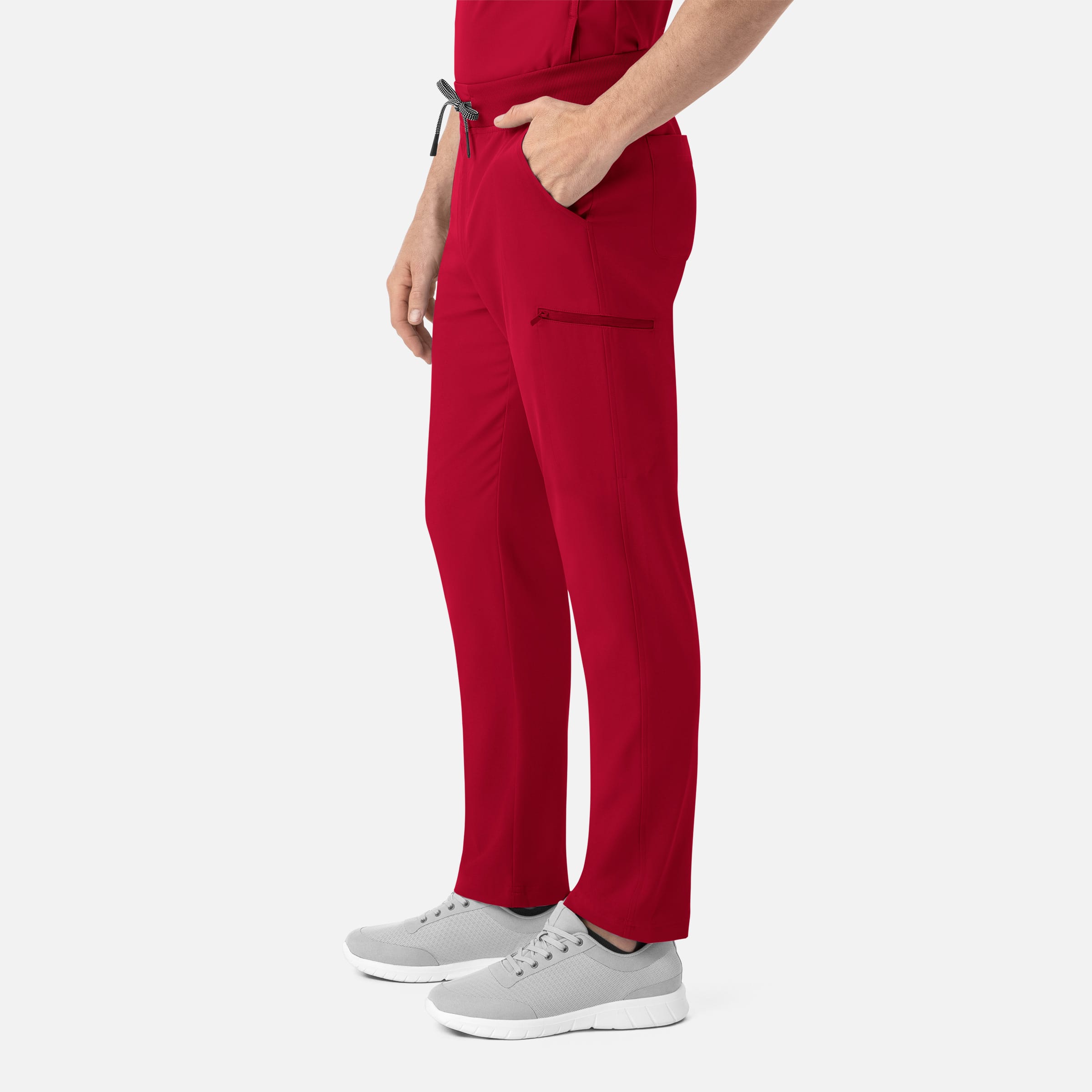 Looking for a comfortable and functional pair of scrub pants? Check out these men’s tapered leg pants with a dyed-to-match rib waistband and contrast convertible drawstring that ties in two ways. With a functional zip fly and multiple pockets, these pants are perfect for any type of work shift. Plus, they’re made from a blend of polyester, recycled polyester, and spandex fabric, providing 360° stretch and quick-dry properties while remaining low maintenance. Don’t miss out on these versatile trousers!