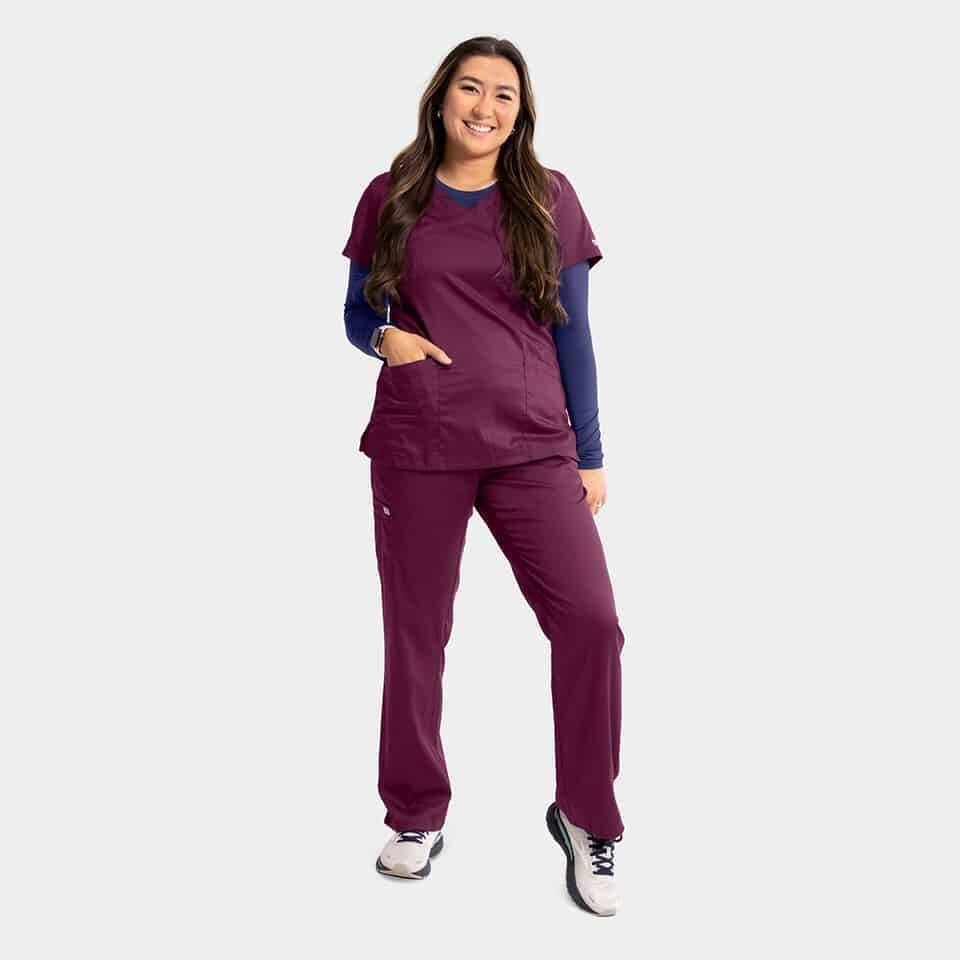 Discover the ultimate women’s scrub pant designed for the modern healthcare warrior. With a chic semi-tapered leg, cozy yoga-style waistband, and versatile pockets – from front slash to a special bandage scissor spot. Pintucked details add a fashion-forward twist. Transform your work attire with these standout scrubs!